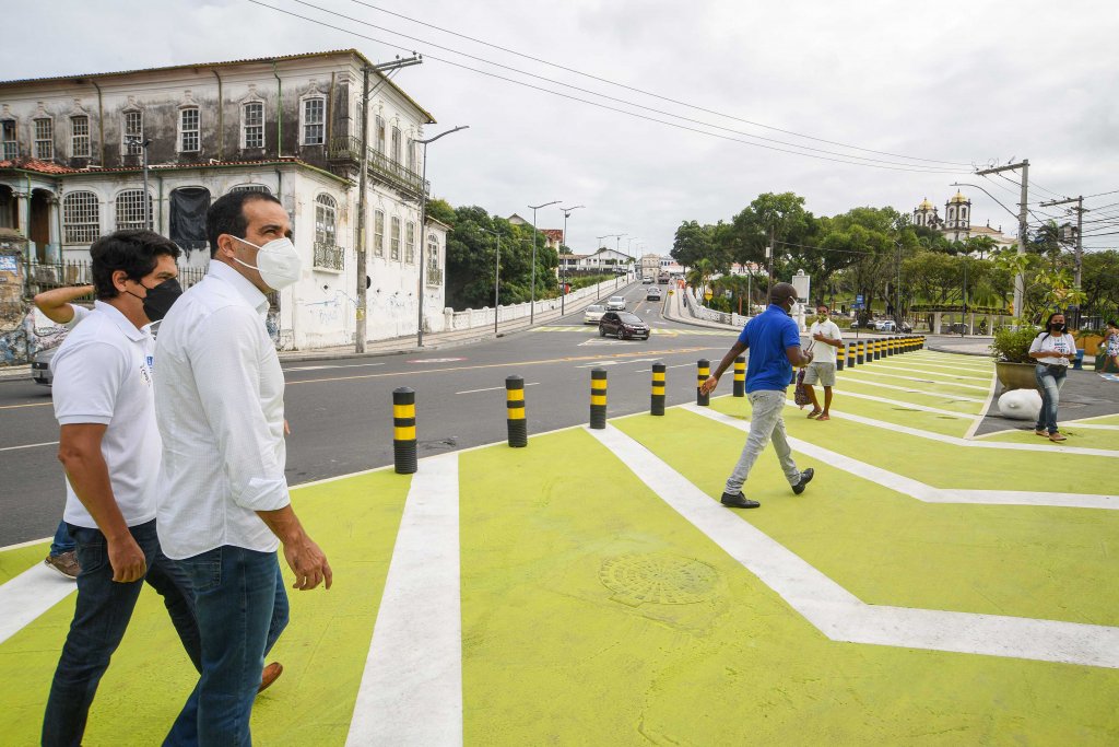 A iniciativa, que integra a mobilização do Maio Amarelo, foi implantada pela Prefeitura e as mudanças entregues pelo prefeito Bruno Reis e pelo superintendente de Trânsito de Salvador (Transalvador), Marcus Passos, nesta segunda-feira (31), durante solenidade simbólica na Cidade Baixa.