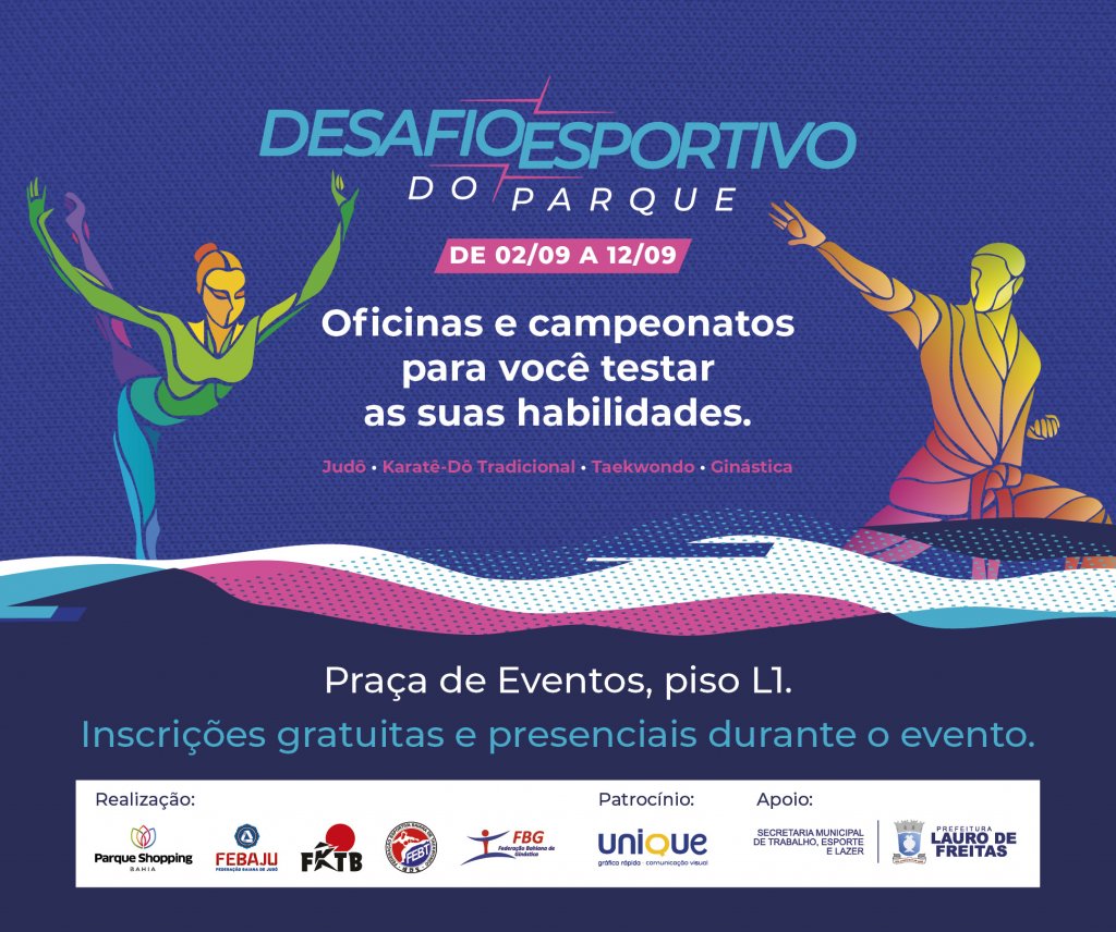 Entre os dias 02 e 12 de setembro, o Parque Shopping Bahia recebe o Desafio Esportivo do Parque. O evento contará com atividades, oficinas abertas ao público, festivais e campeonatos oficiais das federações e será realizado na Praça de Eventos, no Piso L1, seguindo os protocolos sanitários.
