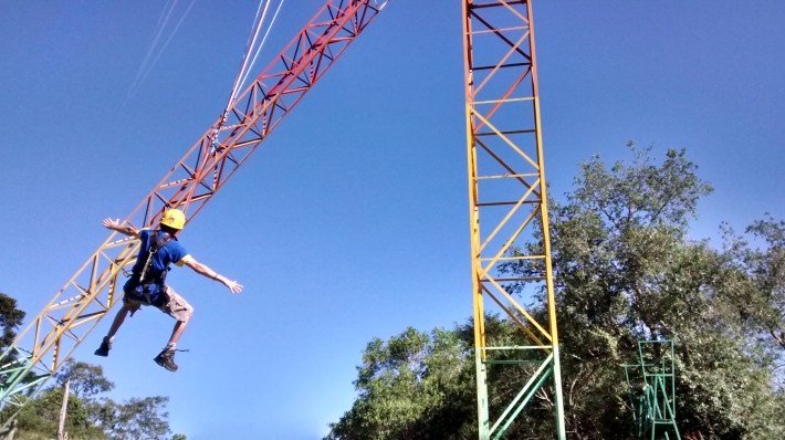 Afivela-se todas as partes da cadeirinha de apoio no participante, sobe-se em uma plataforma,onde os monitores conferem todo equipamento,prendem o mosquetão do guincho em uma estrutura atras da cadeirinha, em meio as costas do participante, juntamente com quatro cordas conectadas a sua cadeirinha, o guincho começa a puxar para cima lentamente, conforme você vai ganhando altura, logo após, o guincho é solto, fazendo o esportista ficar balançando de um lado para o outro e possibilitando ver uma magnifica paisagem dos vales da Serra Gaúcha e toda a extensão do parque.