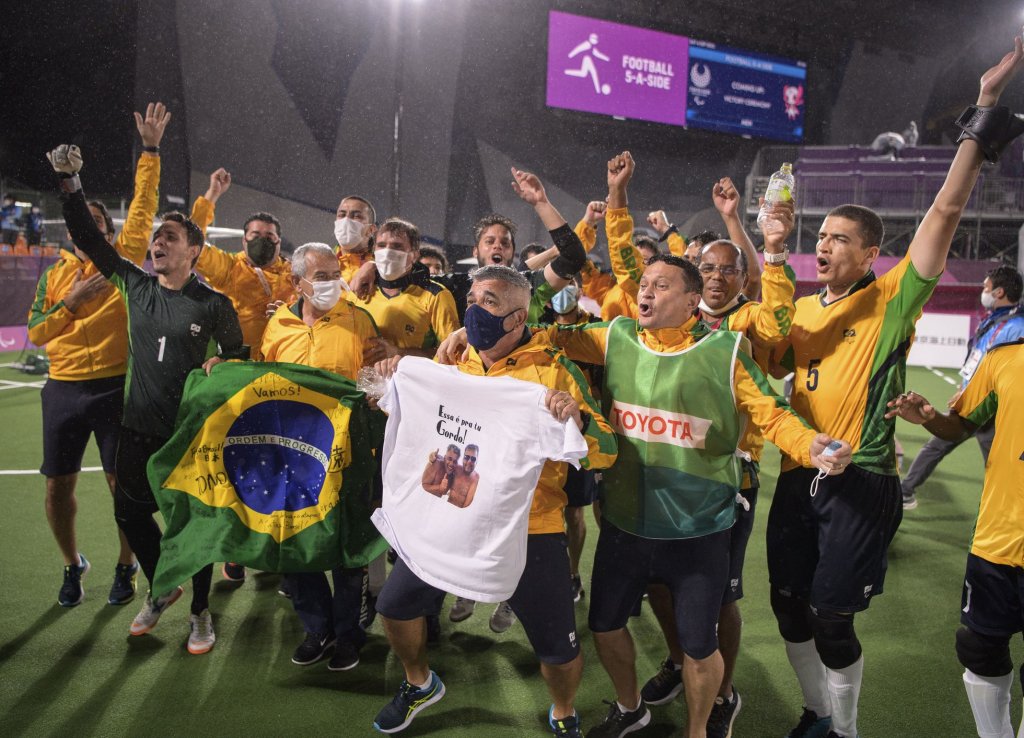 Medalha de ouro - O Brasil conquistou sua quinta medalha de ouro na modalidade, nas cinco vezes em que ela foi disputada em paralimpíadas. A hegemonia foi confirmada por um golaço de Nonato, que garantiu a vitória por 1x0 sobre os maiores rivais da equipe, os argentinos. O Brasil jamais perdeu uma partida de Futebol de 5 em paralimpíadas.