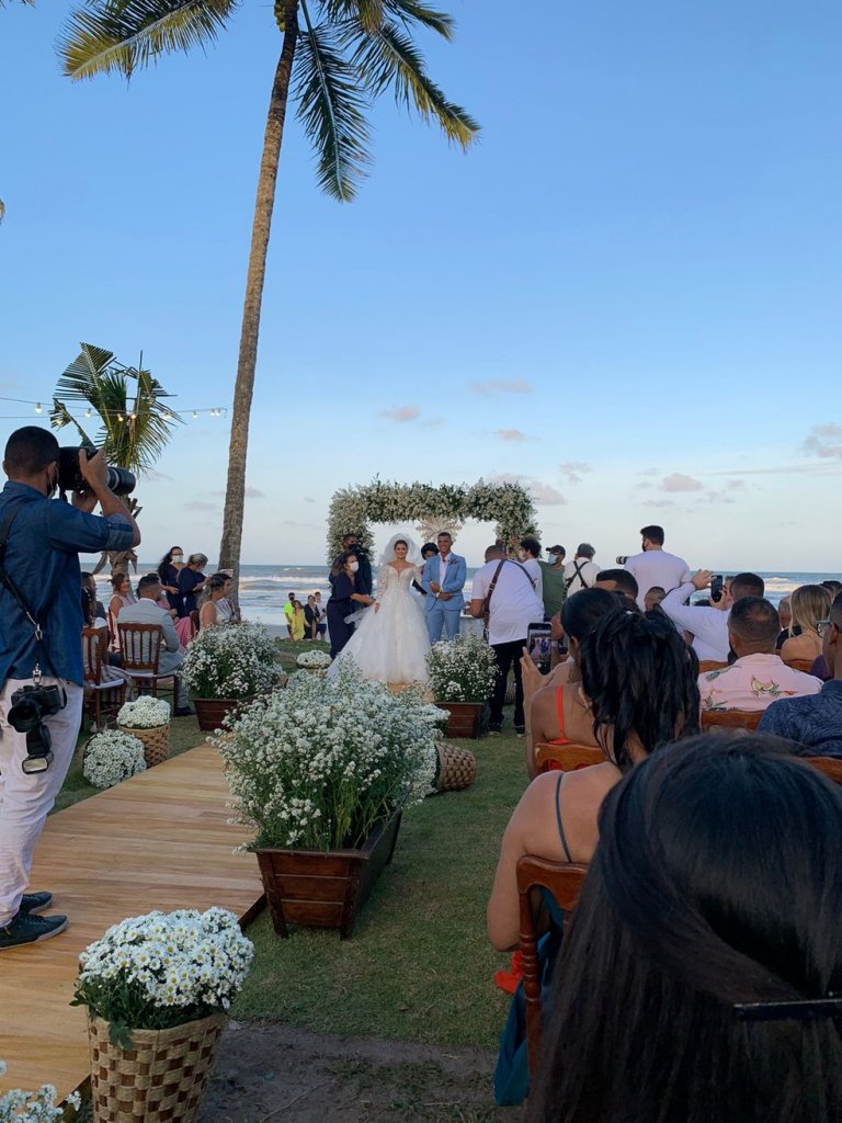 Cerimônia aconteceu ao ar livre, em um resort à beira mar, e contou com a presença de amigos e familiares. O campeão olímpico na canoagem, Isaquias Queiroz, se casou com Laina Guimarães, mãe do pequeno Sebastian, de 4 anos.