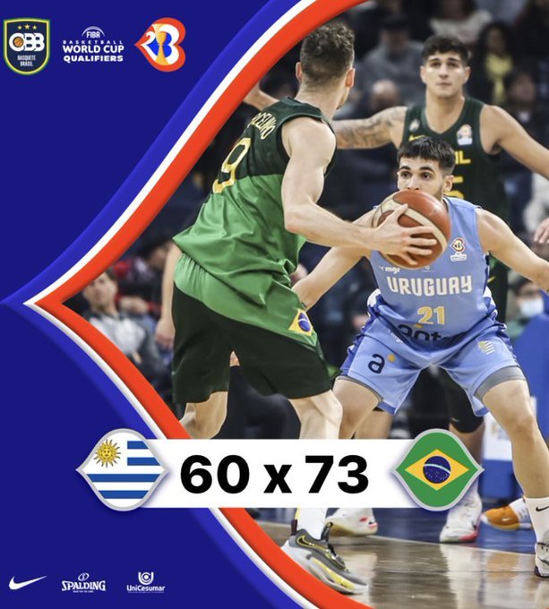 A seleção brasileira masculina de basquete derrotou o Uruguai por 73 a 60, em Montevidéu, pela primeira fase das Eliminatórias para a Copa do Mundo da modalidade, que será disputada no Japão, nas Filipinas e na Indonésia. O cestinha do Brasil na partida foi o ala-pivô Rafael Mineiro, com 15 pontos.