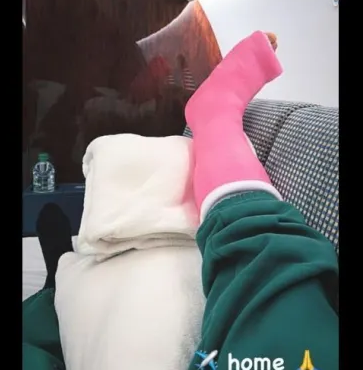 “Home” (“casa”), diz a legenda da foto postada em seu stories no Instagram. A imagem mostra o pé engessado do jogador, deitado.
