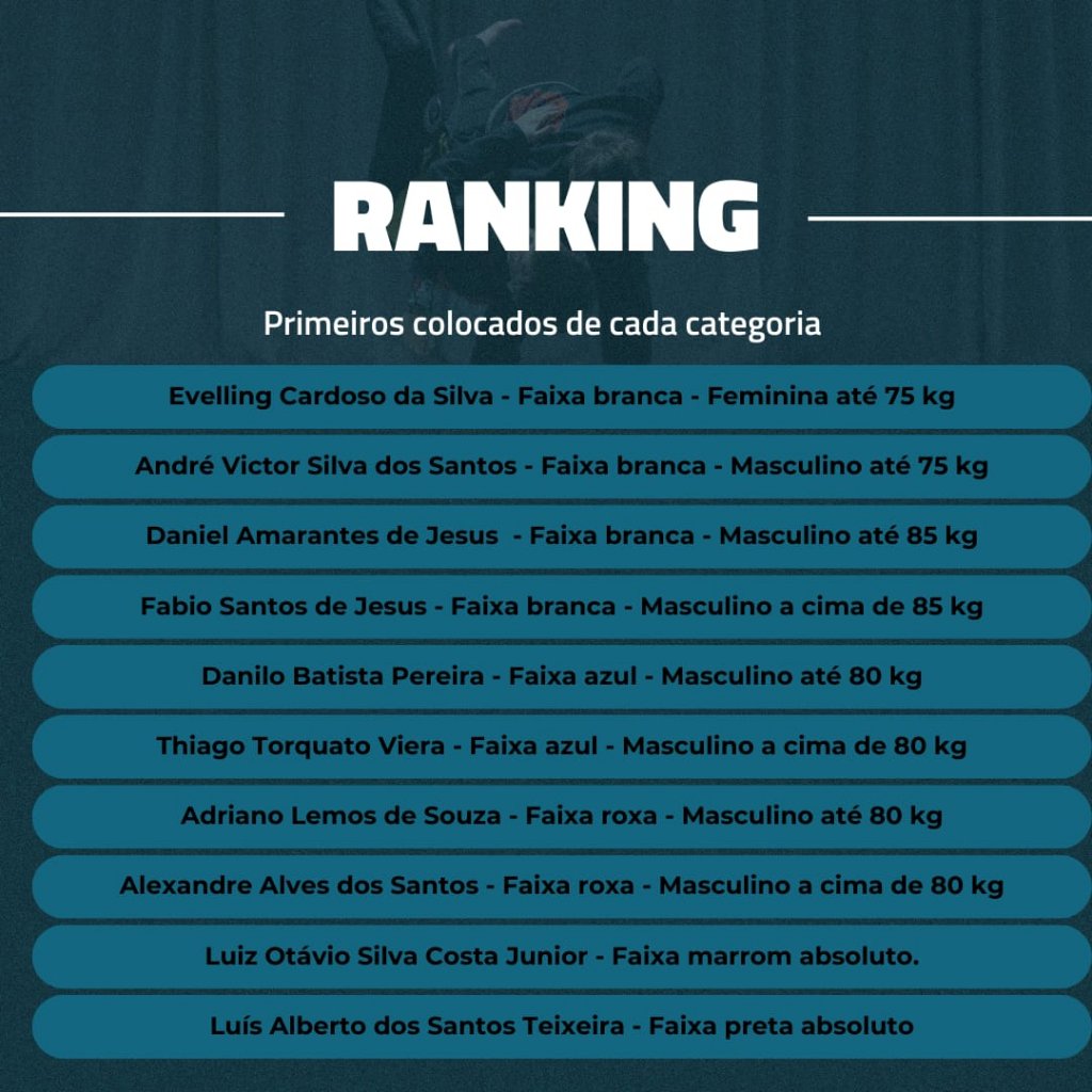Foram disputadas as categorias em equipes e individuais nas faixas brancas, nos pesos até 75, 85 e a cima de 85 quilos, nas faixas azul e roxa, até ou acima de 80 quilos, nas faixas marrom e preta com pesos absolutos.